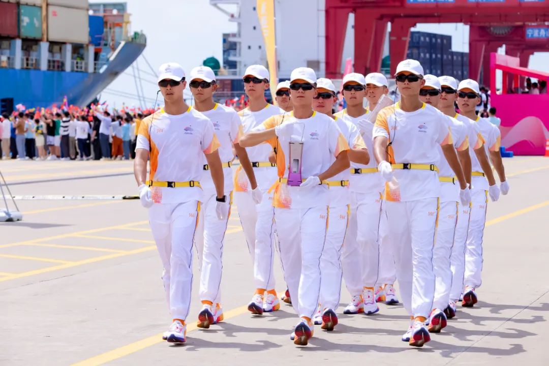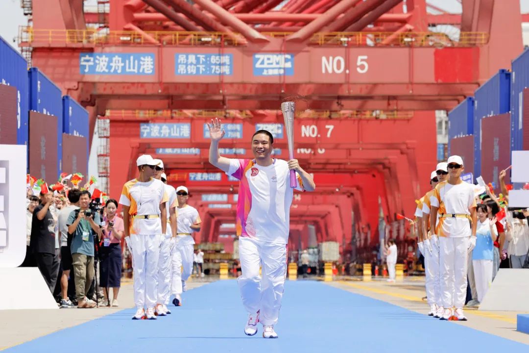 火炬传递宁波站收火仪式位于宁波舟山港梅山港区集装箱2号码头。