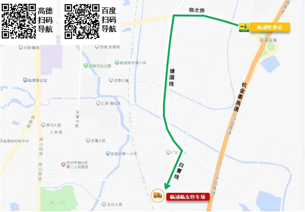 去往杭州城南方向货车建议可从杭金衢高速临浦收费站驶出,途经临北路-塘湄线-白曹线至临浦临东停车场。