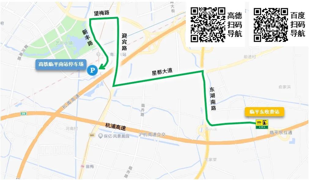 沪杭高速方向小客车建议可从临平收费站驶出,途经望梅路-迎宾路-文正街-良熟路至高铁临平南站停车场,该停车场附近可由地铁临平南高铁站换乘地铁9号线。