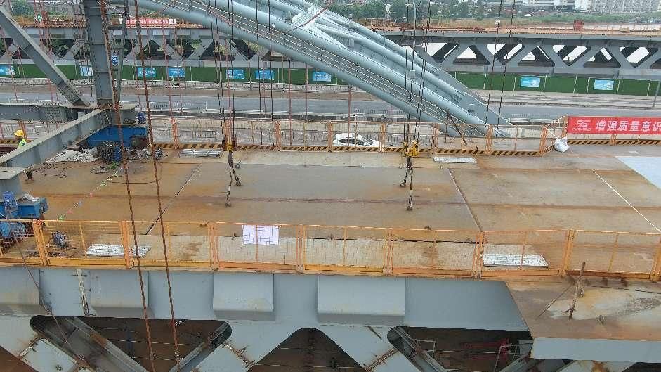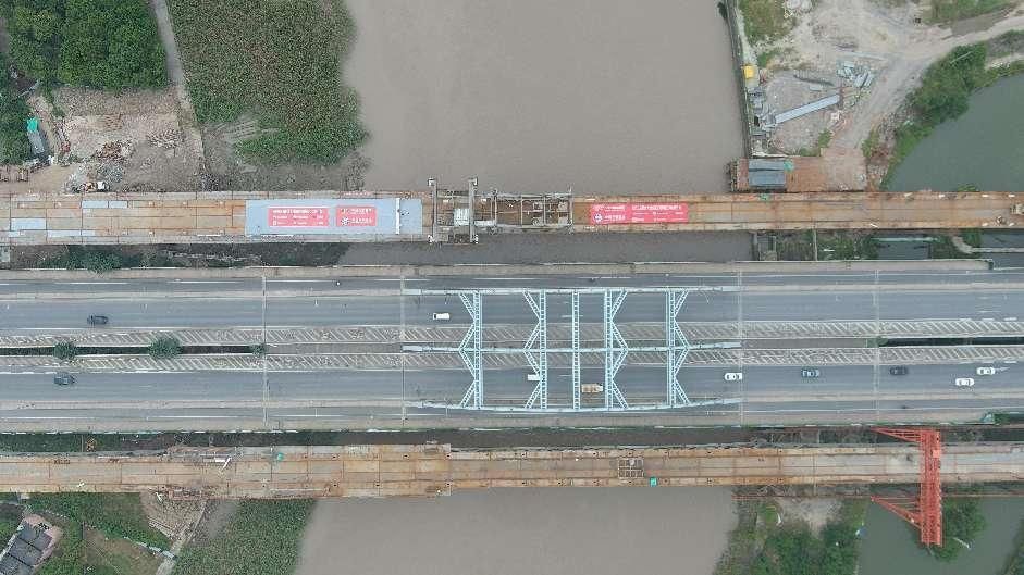据悉,该项目是整个工程的重要节点标段,施工工期压力大、安全风险高,施工组织较为困难。自开工以来,项目全体参建人员施工“不打烊”,强化过程安全质量管控,持续加快施工进度,历时300天,提前三个月完成主桥合龙的目标。项目建设中,建设单位推广应用了“门式起重机多点弹性支承基础”“节段整体有轨滑移”等先进施工技术,并首创“钢桁梁散件悬臂拼装”技术专利,提升了钢桁架梁桥施工质量。