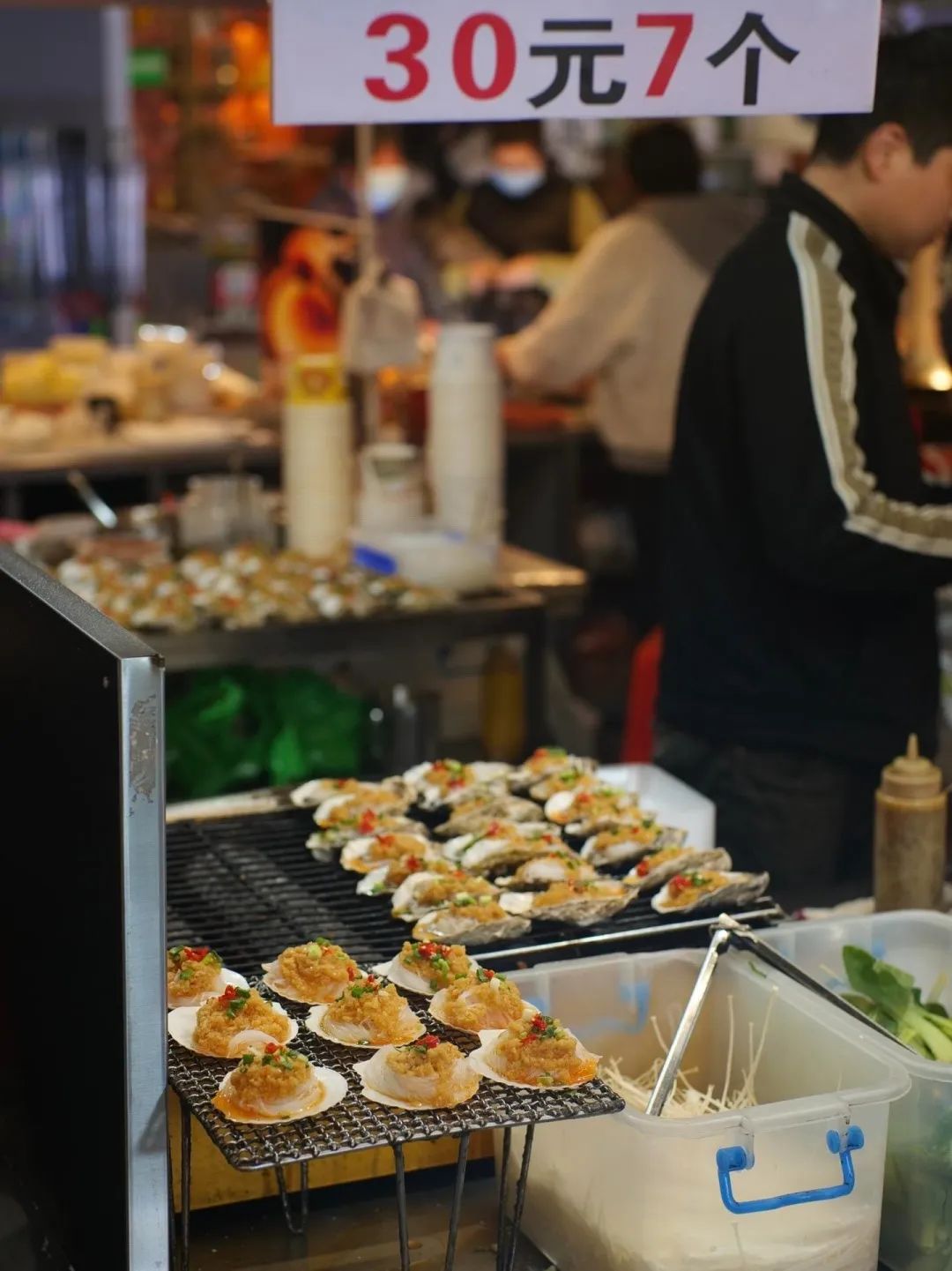 摊贩们热闹的叫卖声,夜色中滋滋冒油的烤串声……人声鼎沸和市井气息,这鲜活的人间烟火,让人如痴如醉。