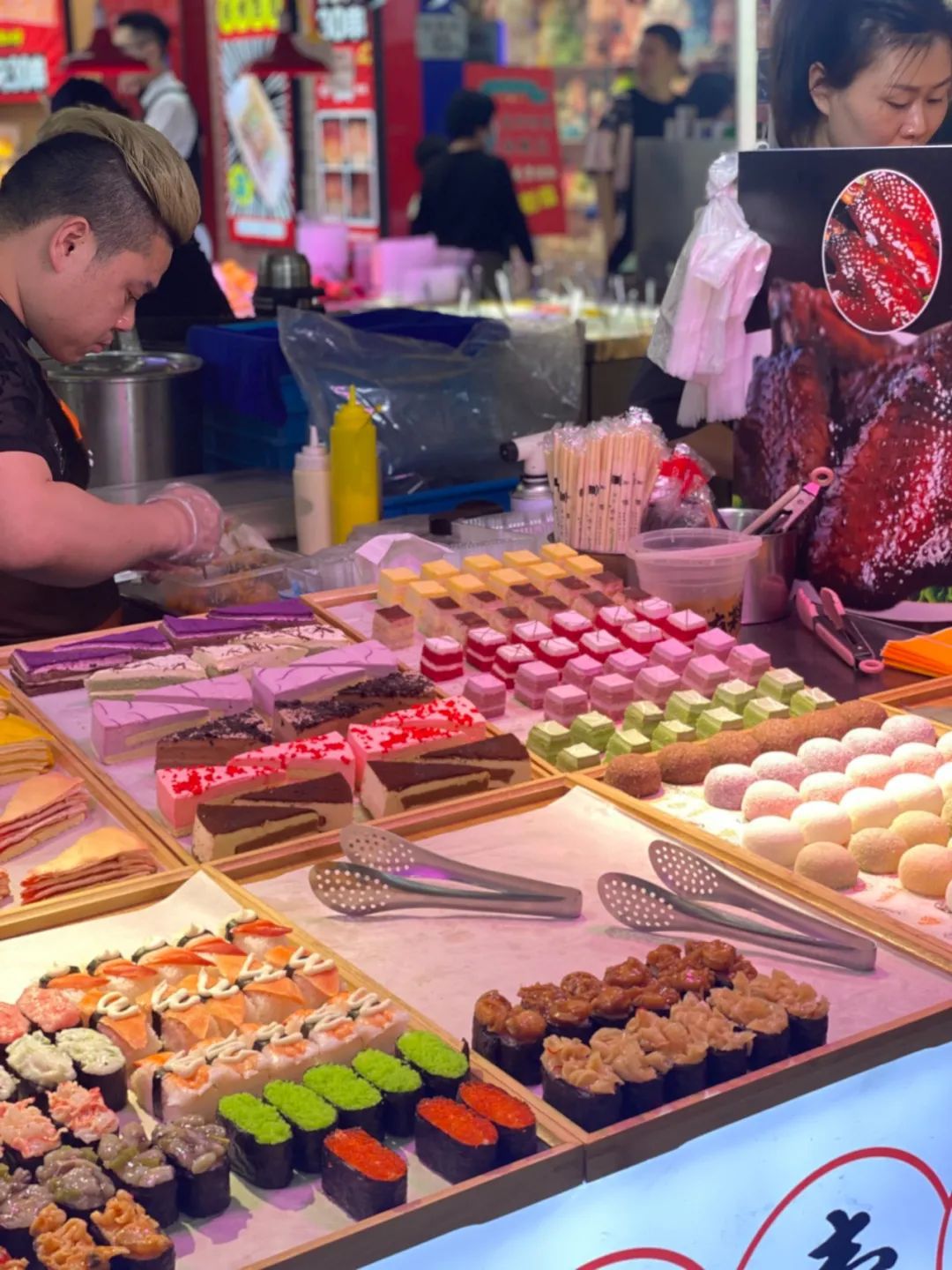 苕皮、瘦肉丸、臭豆腐、炒饭、钵钵鸡、烤串、烤猪蹄……