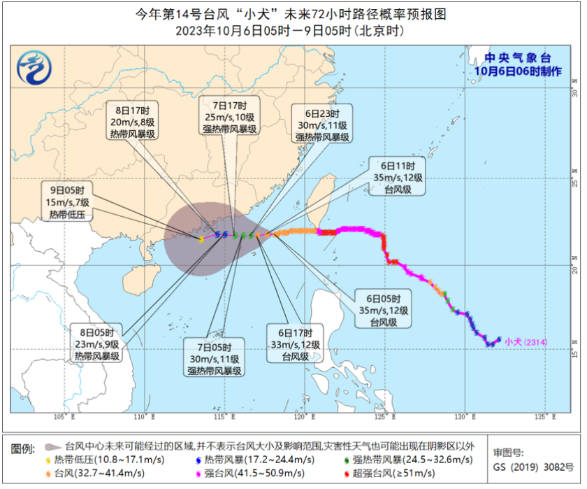 预计,“小犬”将以每小时10公里左右的速度向偏西方向移动,逐渐向广东东部沿海靠近,8日在广东东部近海海面转向西偏南方向移动,强度逐渐减弱。