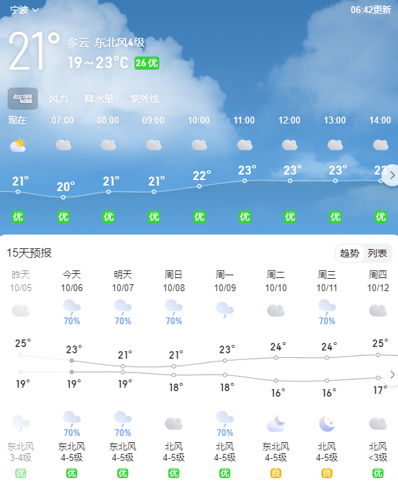 长假只剩下最后一天了,今天,宁波的天气舞台被阴天和小雨“承包”了。