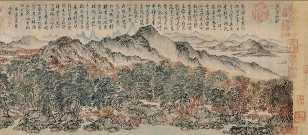 一幅元气淋漓的《太白山图》,是“元四家”之一的王蒙隐居宁波期间绘就,描绘了浙江宁波鄞县太白山天童寺及周边景物,通过对“松林之境”“山川之境”“河流之境”的层层渲染,尽显四明大地山川人文之美。