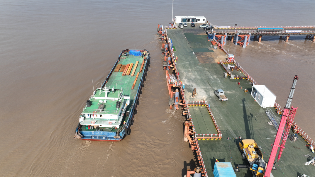 近日,杭州湾跨海铁路大桥南岸材料平台首艘船试泊成功!这标志着项目材料周转平台即将搭设完成,为项目海域段施工打下坚实基础。