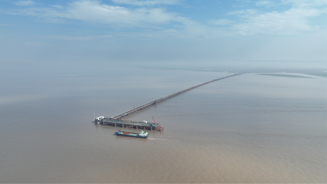 由中交二航局承建的杭州湾跨海铁路桥是新建南通至宁波高速铁路的控制性工程,包括北、中、南三座航道桥和跨大堤、海中、浅滩区引桥,全长29.2公里,采用时速350公里的双线无砟轨道设计,是目前世界上在建长度最长、建设标准最高的高速铁路跨海大桥。建成后将创下多项世界纪录,对世界铁路桥梁建设领域具有里程碑意义。