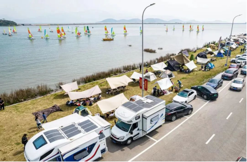 优越的地理位置为露营创造了得天独厚的环境,岸边狭长的草坪适合露营、烧烤、野餐等活动,还有沙滩供孩子们玩乐。在海湾可以体验桨板、帆船等水上运动,感受乘风逐浪的体育魅力。每到阳光明媚的日子,一顶顶帐篷此起彼伏地支起来,还吸引了各式各样的咖啡车、餐车前来摆摊。