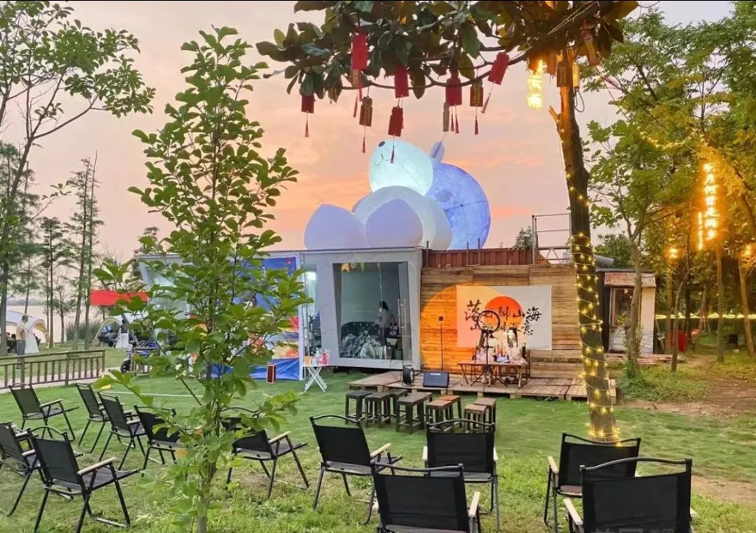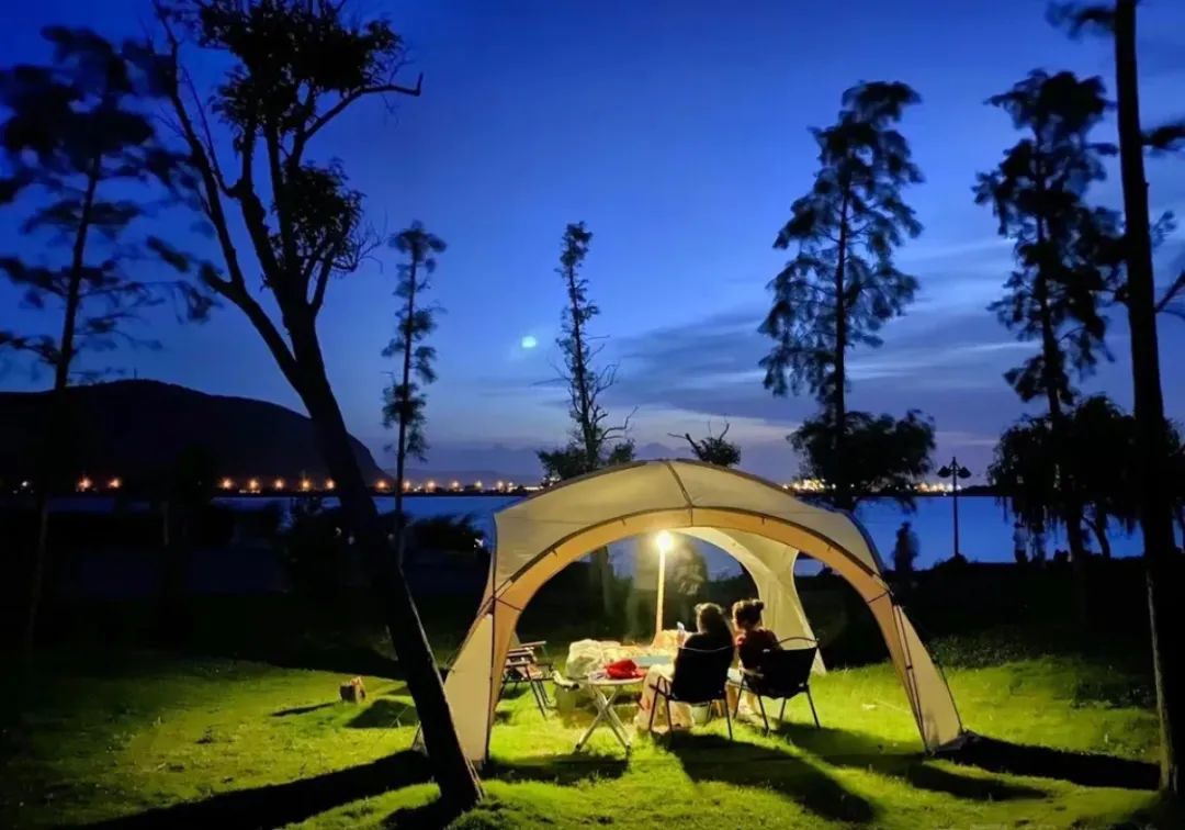 你可以坐在帐篷内端起一杯下午茶细细品尝,也可以围坐篝火和挚友们聊聊失意与欢畅。森林里的一次邂逅,头顶星辰、脚落山野,湖面上点点流萤闪烁,夕阳下晃晃悠悠的傍晚,晚风会吹来多少美梦。