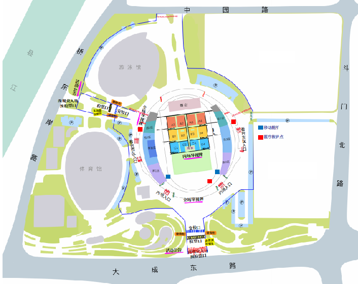 ⑥【共享单车】在体育中心周边的大成路人行道、体育馆西门、RBD公园临时增设4个共享单车区域,并在地铁站及演唱会周边停车场点位加大了投放量,600余辆单车可供使用。