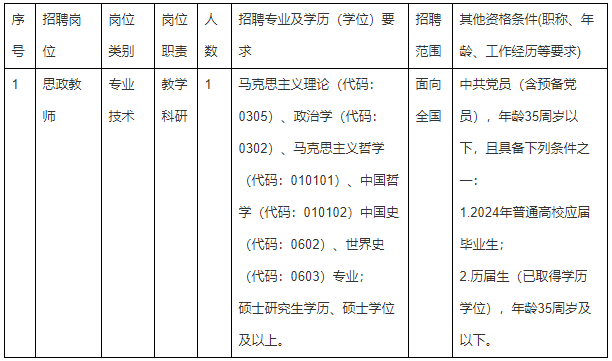 根据《宁波市事业单位公开招聘工作人员实施办法》的有关规定,宁波卫生职业技术学院决定面向全国公开招聘思政教师1名。