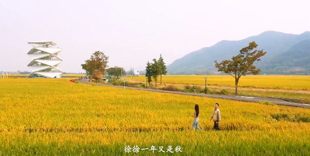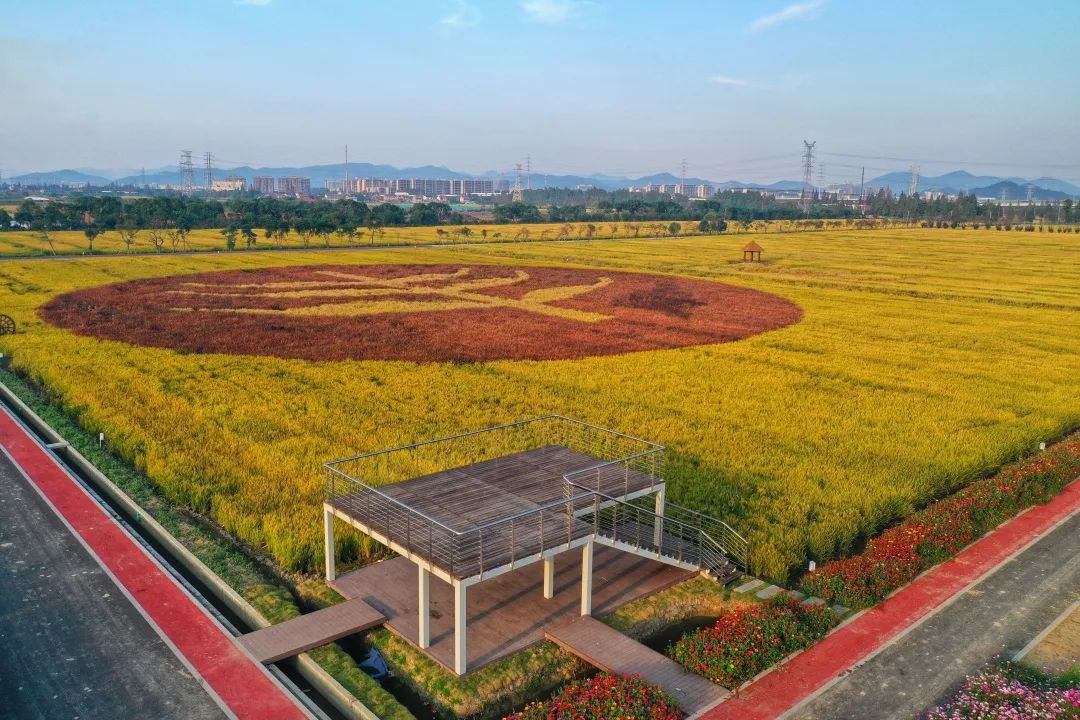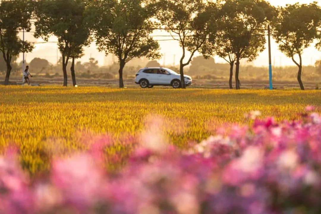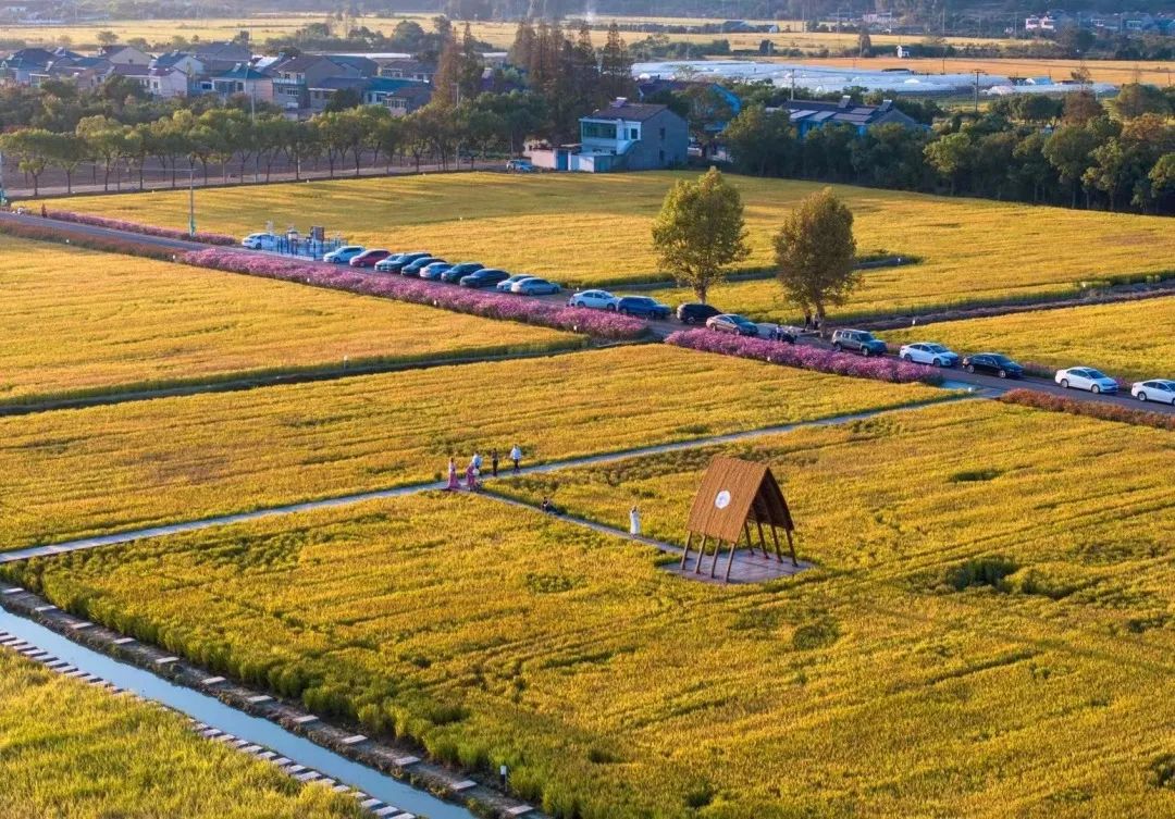 微风中的稻谷发出沙沙的声响,稻田边的道路两侧种满了格桑花和百日菊,是秋日拍照打卡及亲子出行的好去处。