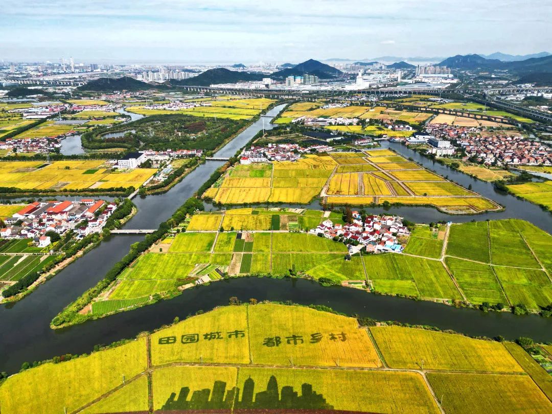“田园城市,都市乡村。”北仑区小港下周隘村的稻田画带着丰收的色彩铺展在大地。沿金黄色稻田间的村道行至村口桥头,几棵柿子树上满枝头的艳红柿子映入眼帘。