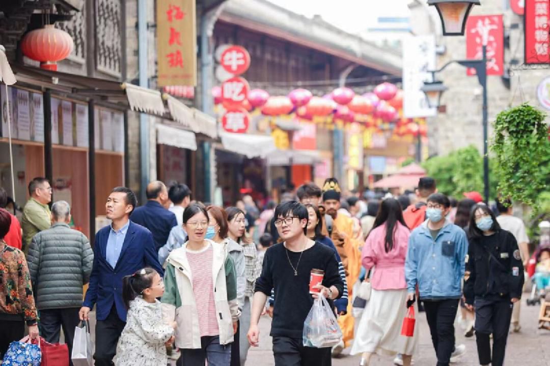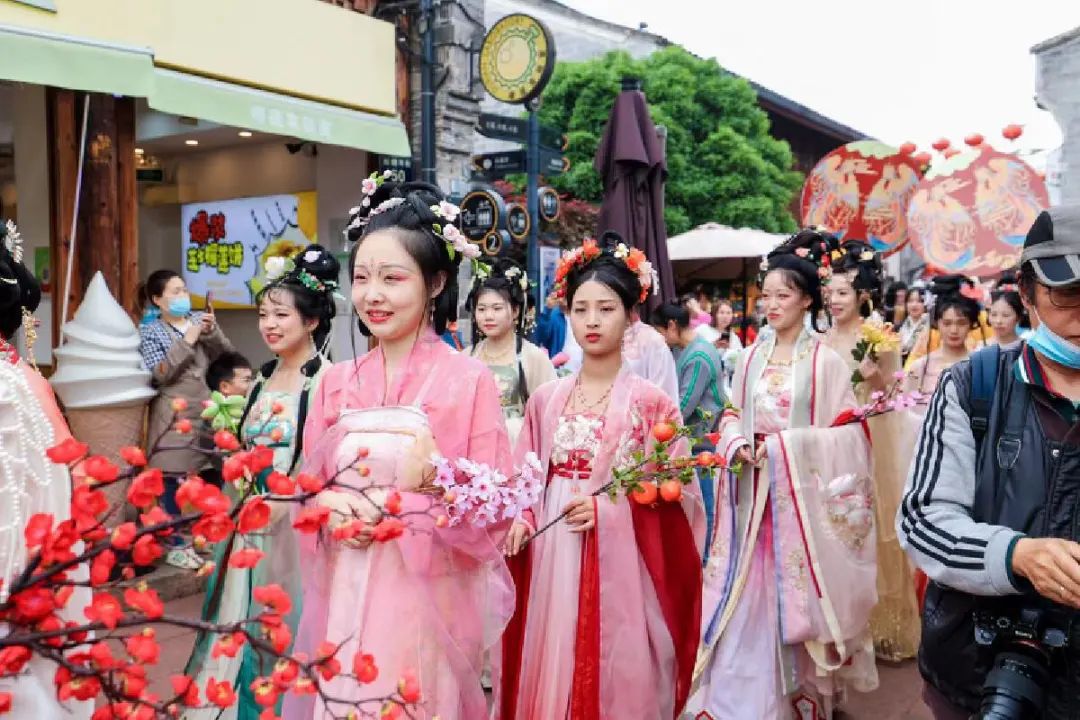 同时布局传统民俗、人文生活、文旅体验、夜生活、商旅配套等5大业态,汇聚各类商户141家。将时尚与传统相结合,搭建起可触可感的多元消费场景,让游客漫步百年石板路,就能偶遇顶流“卖崽青蛙”、入镜网红直播画面。