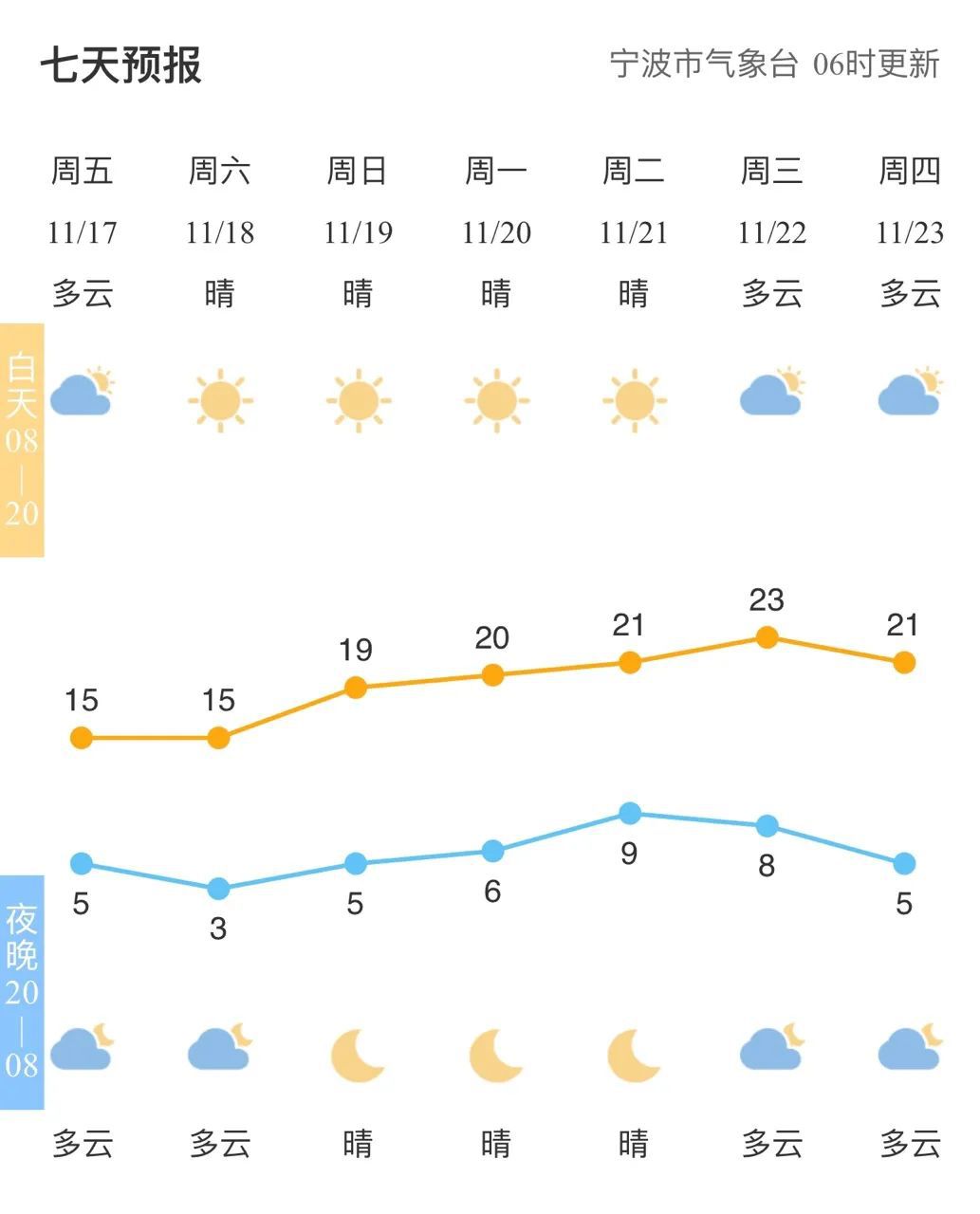 今天到明天受冷高压控制,最高气温15℃左右,明天最低气温5℃上下,19日早晨最低气温仅3℃左右,是本轮冷空气过程的最低点。