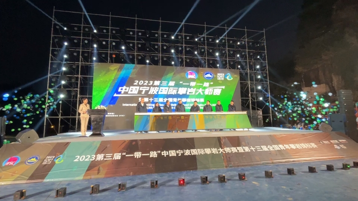 11月16日晚,第三届“一带一路”中国宁波国际攀岩大师赛暨第十三届全国青年攀岩锦标赛在宁波海曙鄞江攀岩公园开幕。在4天(11月16日-19日)的比赛中,将有来自中国、印度尼西亚、哈萨克斯坦、韩国、日本、新加坡、中国香港等7个国家和地区的近230名攀岩运动员齐聚甬城,在飞檐峭壁间上演精彩角逐。
