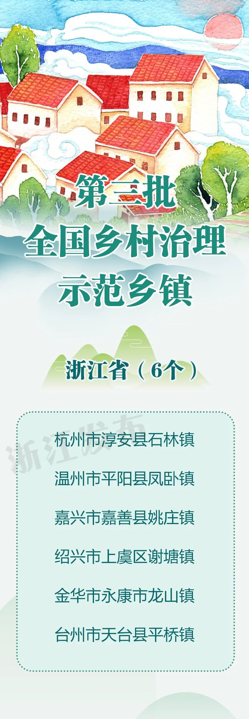 近日,农业农村部、中央宣传部、司法部联合印发通知,公布第三批全国乡村治理示范村镇名单,认定北京市大兴区庞各庄镇等100个乡(镇)为第三批全国乡村治理示范乡镇、北京市朝阳区高碑店乡高井村等1001个村为第三批全国乡村治理示范村。其中,浙江分别有6个乡(镇)、60个村入选其中。