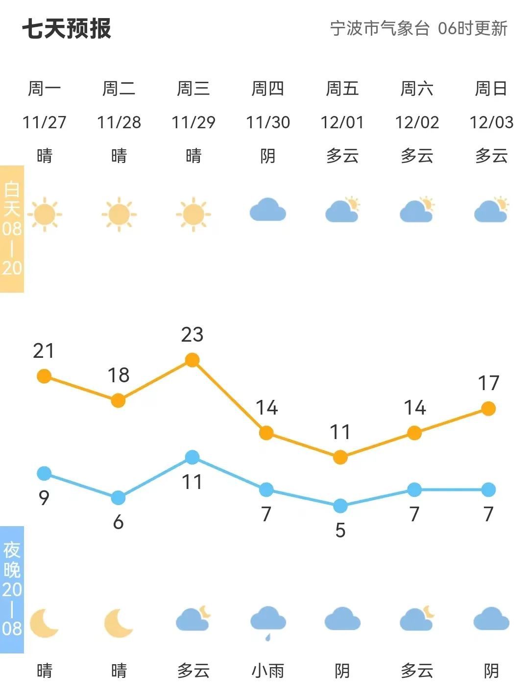 冷空气要来了宁波气温的“跳水”,具体会出现在哪一天?从气象部门预测来看,冷空气主力11月29日夜里到11月30日影响我市,主要带来大风和降温过程。