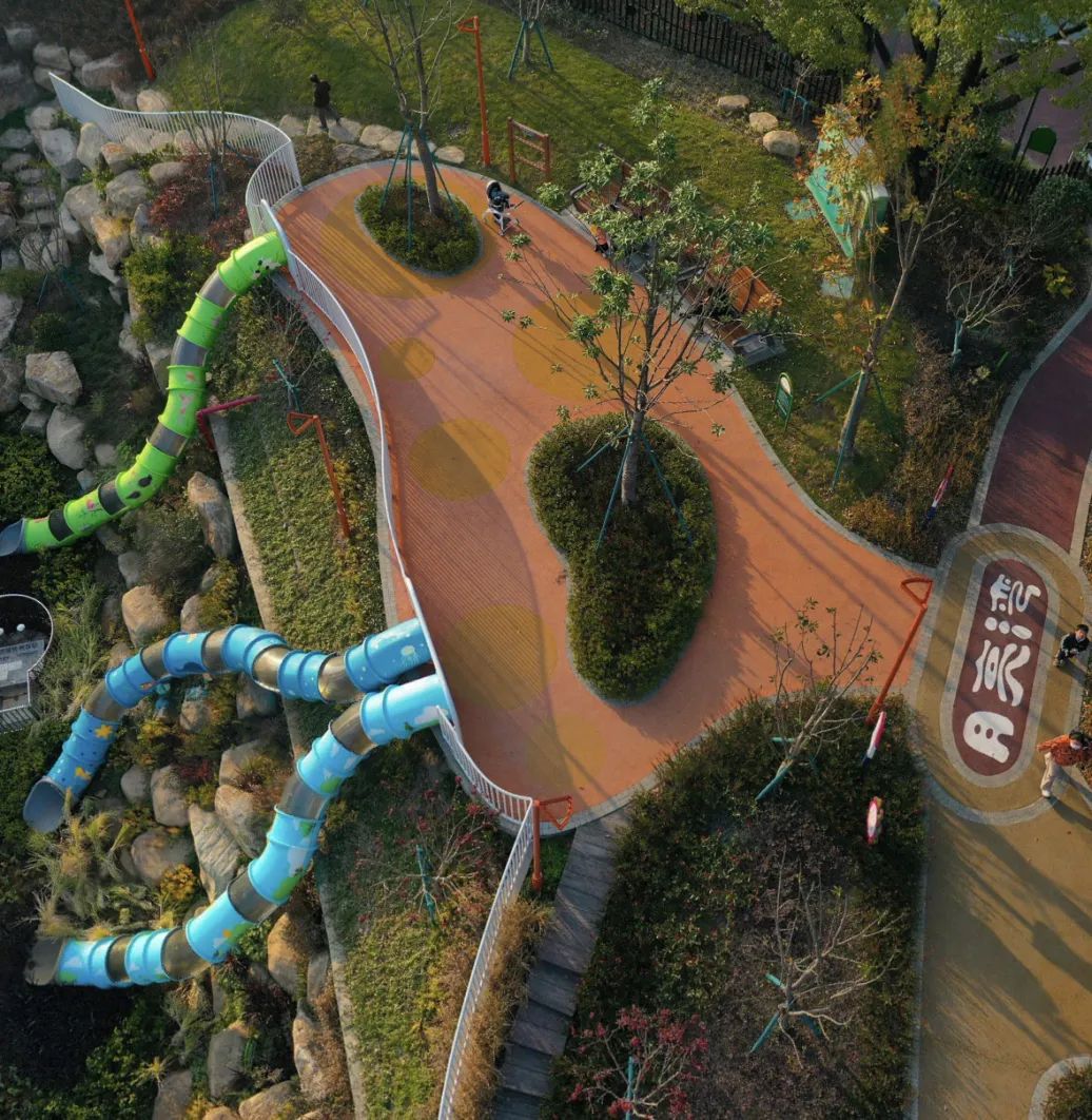 本次改造,最大条件地保留了公园原有的山水格局,并对优良的植物群落进行了保留利用。现在看到的红黄相间的水杉林、枫香林,还有西北山坡地香樟、松树林都是原先就在的大型乔木,让公园拥有了美丽林冠线,也让小朋友在游玩时感受大自然的四季变化。