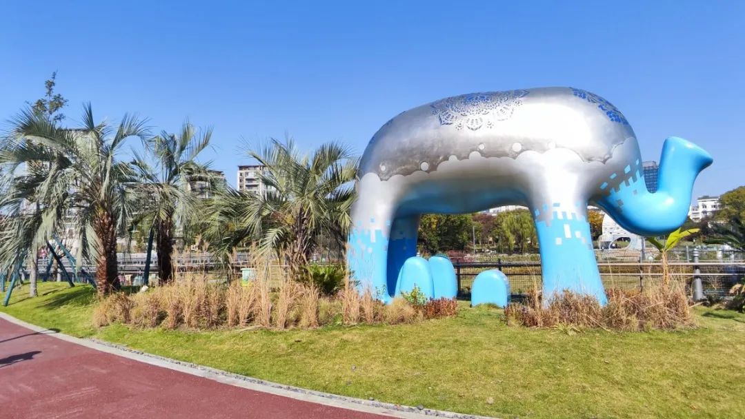 在湖的南侧,立了一个“母子象”雕塑。据了解,该雕塑是从征集来的老照片中得到的灵感。以前月湖儿童公园的大象滑滑梯,是很多宁波人童年的记忆,现在的“母子象”雕塑将这份记忆重新“定格”。