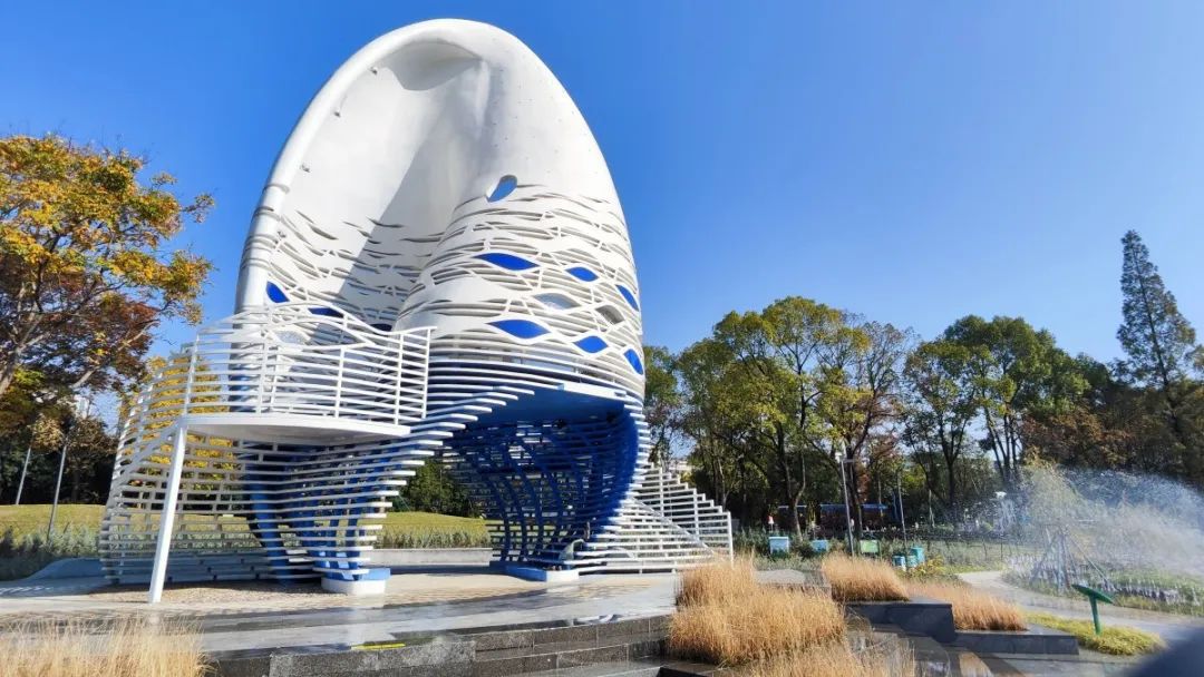 新的儿童公园还配置了6处大型公共艺术雕塑,有泡泡鱼、海螺、彩虹风车、四叶草、风帆尺等,造型童真有趣,也增添了公园的艺术氛围。其中,湖畔的大海螺雕塑高15米,是公园的地标,可以沿着楼梯盘旋而上,仰望星空。