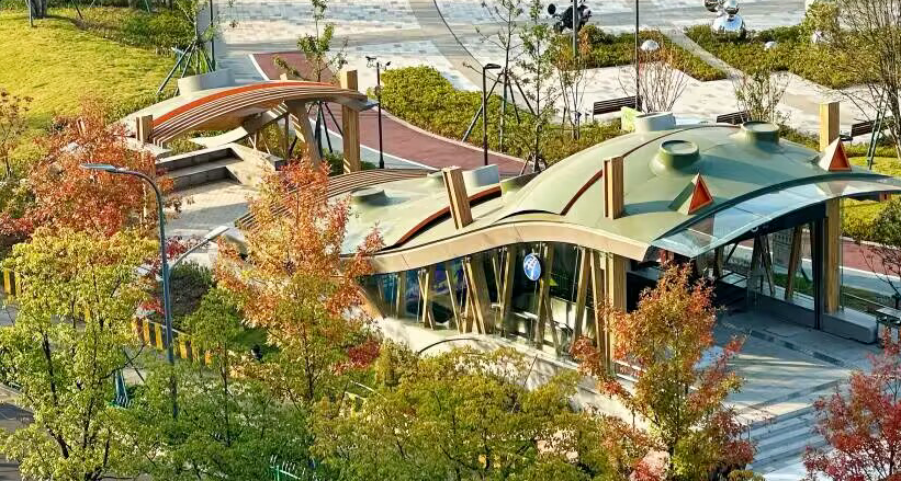 新开放的G出入口位于兴宁路北侧,是宁波地铁现今唯一一个异形出入口,俏皮的毛毛虫造型融入其中,充满童趣。大朋友小朋友们可以乘坐地铁3号线或4号线到达儿童公园站,从G口出站即可前往宁波儿童公园啦!