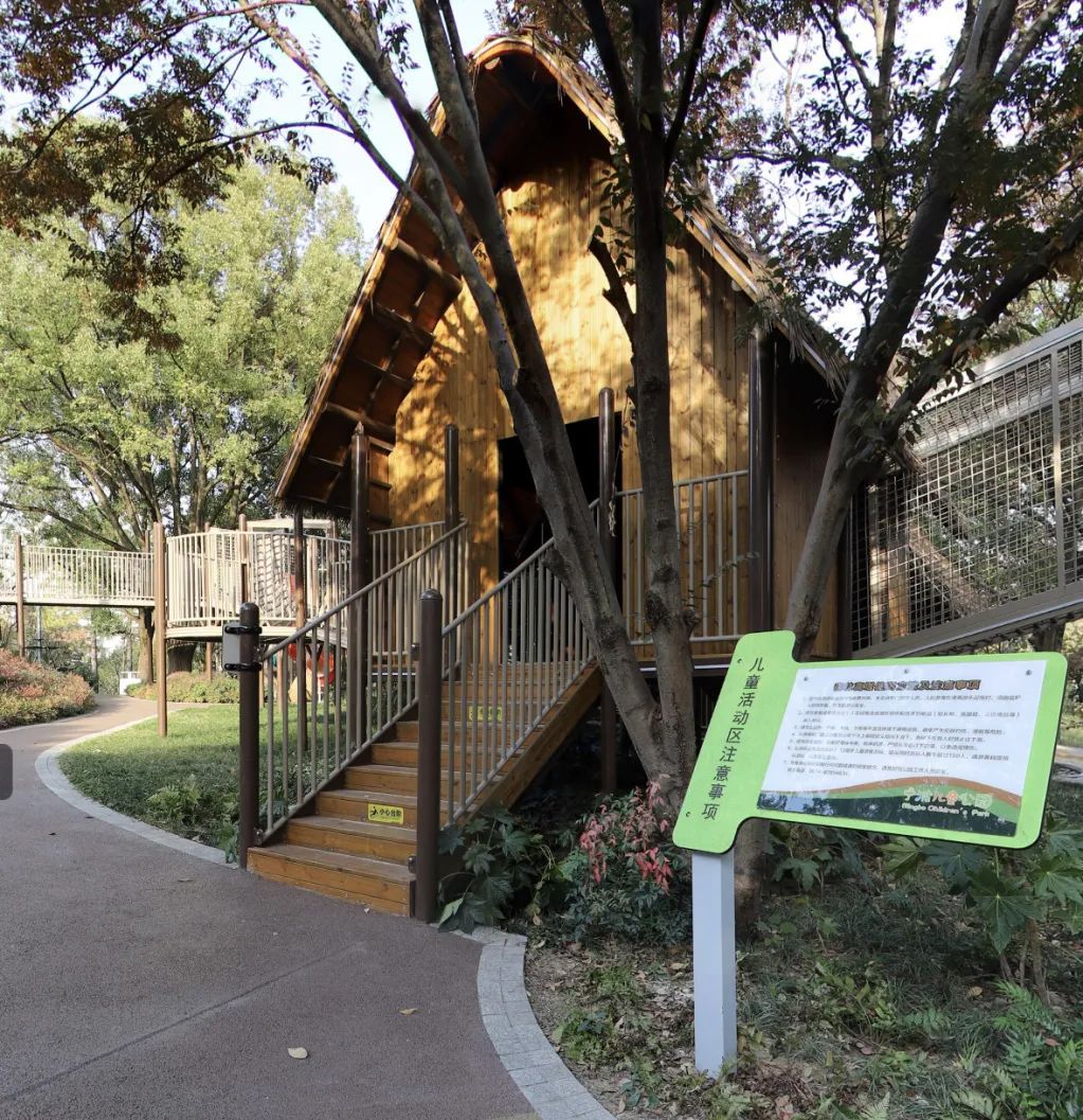 新改建的儿童公园,在保留原有公园山水骨架与大乔木的基础上,以无动力游乐设施作为主要特色。