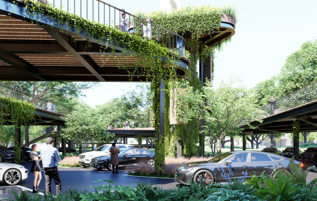 公园建设选用高固碳材料以及乡土植物,同时利用场地的高差设置海绵斑块,构建从蓄水、净水再到景观灌溉的水资源循环系统;公园还将大量利用太阳能,更为环保的晶硅光伏板及碲化镉薄膜将被广泛安装于建筑、廊架以及相关配套设施之上。