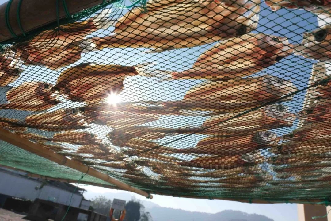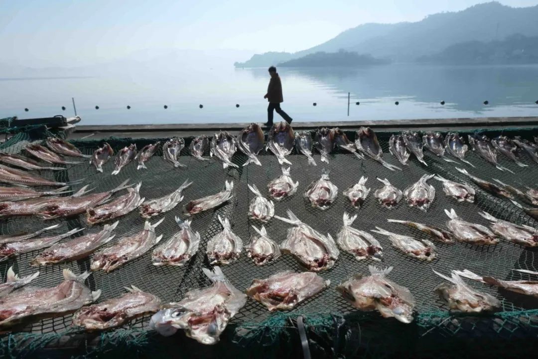 东钱湖畔,渔民晒制鱼鲞。张培坚/摄
