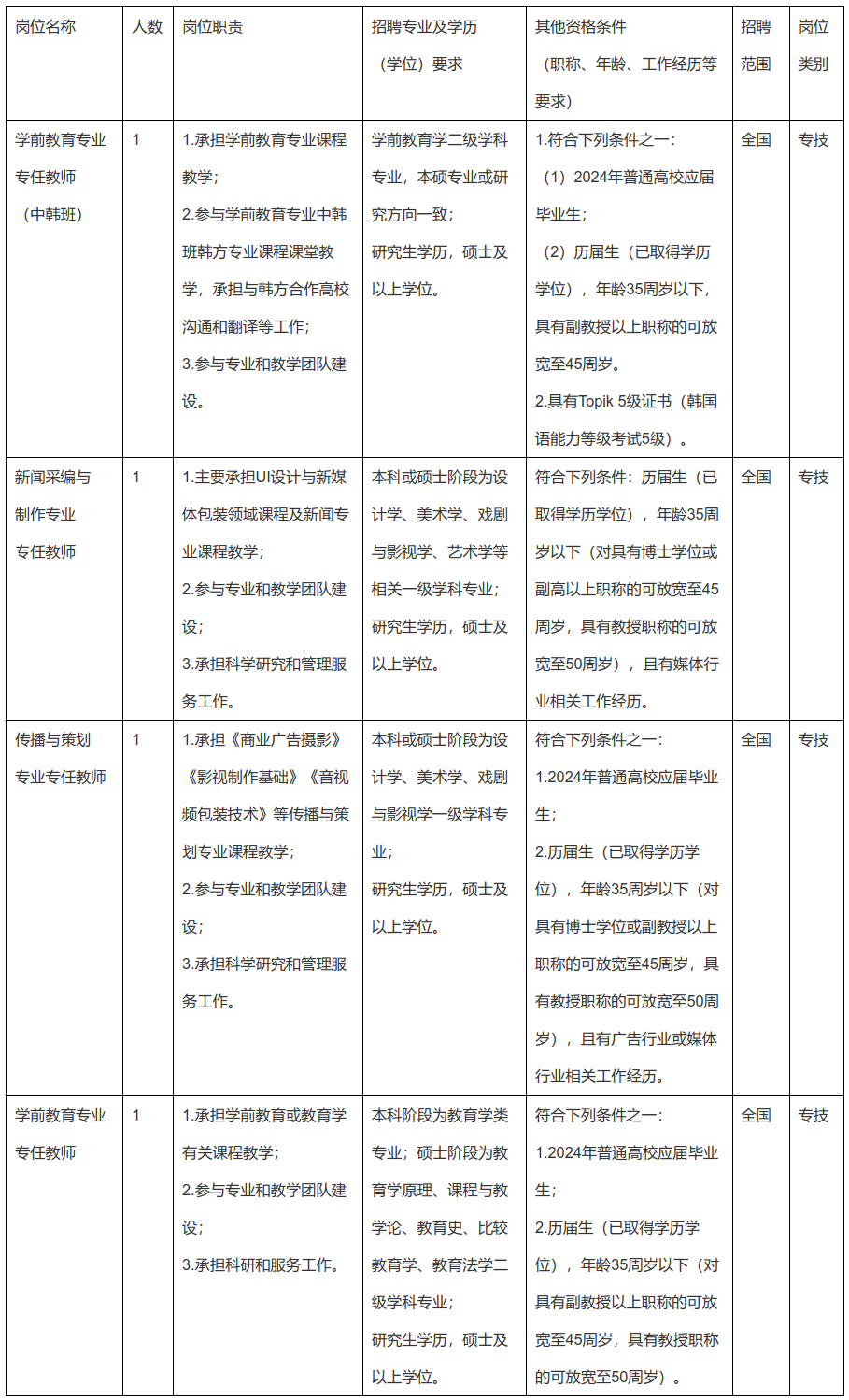注:1.学历学位、专业技术职务资格的取得时间和年龄、工作经历的计算截止时间均为公告发布之日;