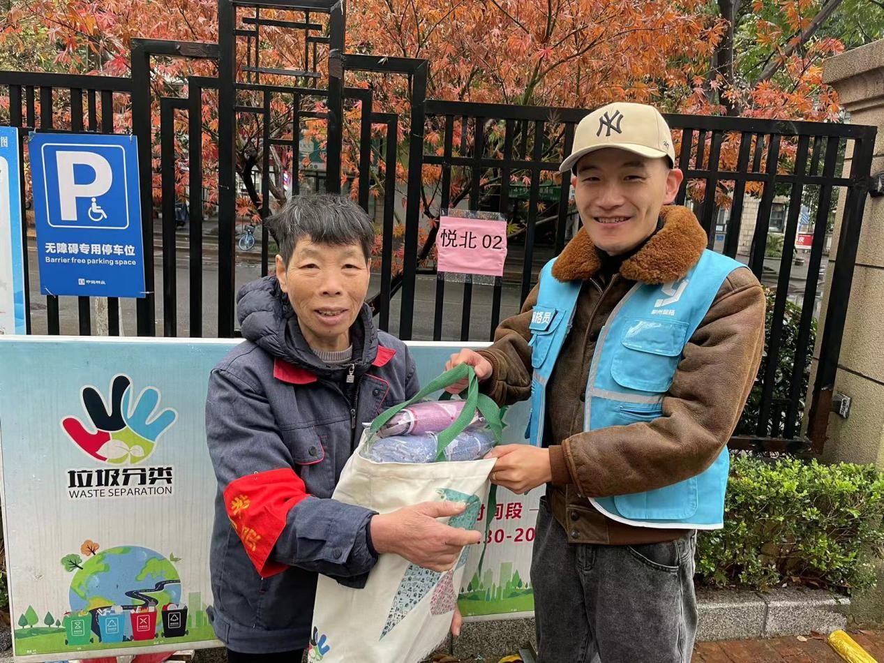 12月19日上午,即便寒风刺骨,东郊街道海悦社区的垃圾点位上桶边督导员仍然坚守在岗位上寸步不离,指导辖区居民垃圾分类工作。“这么冷的天气,我看您冻得双手通红真的辛苦了,这是一点心意希望能帮你们抵御严寒。”网格员小魏代表海悦社区甬爱e家给这些社区环境美容师送去了温暖礼包。这个礼包由社区志愿者、网格员、爱心企业自发准备,有口罩、手套、取暖器等。