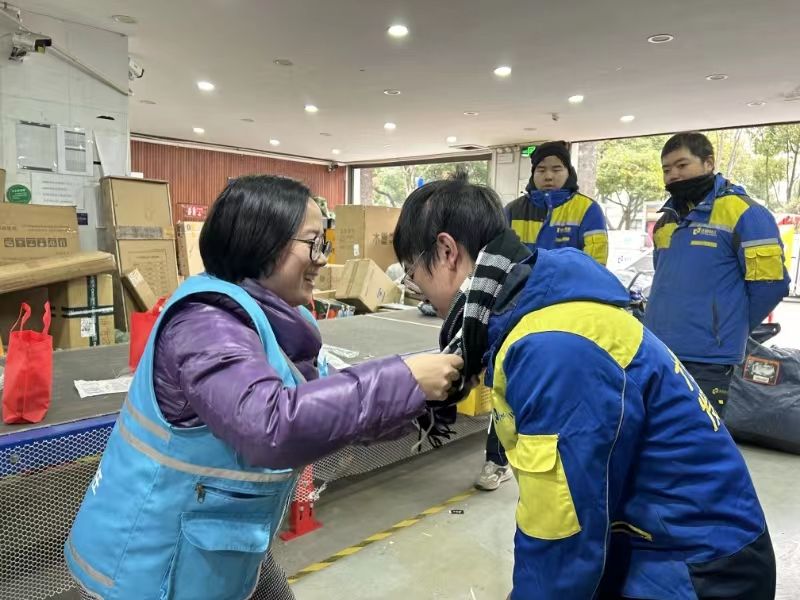 12月18日上午,东胜街道樱花社区里涌动着一股暖流,进入社区的外卖送餐员、快递员等新业态劳动者收到了一份包含暖手宝、驱寒药包、围巾、手套等御寒用品的“暖心大礼包”,这些大礼包由社区工会、“甬爱e家”站点准备,社区网格员、新时代文明实践站志愿者、慈善义工等提前包装完成。“冬天送快递需要强心脏呀,社区送的暖手宝揣兜里,很暖心!”快递小哥范可可说道。