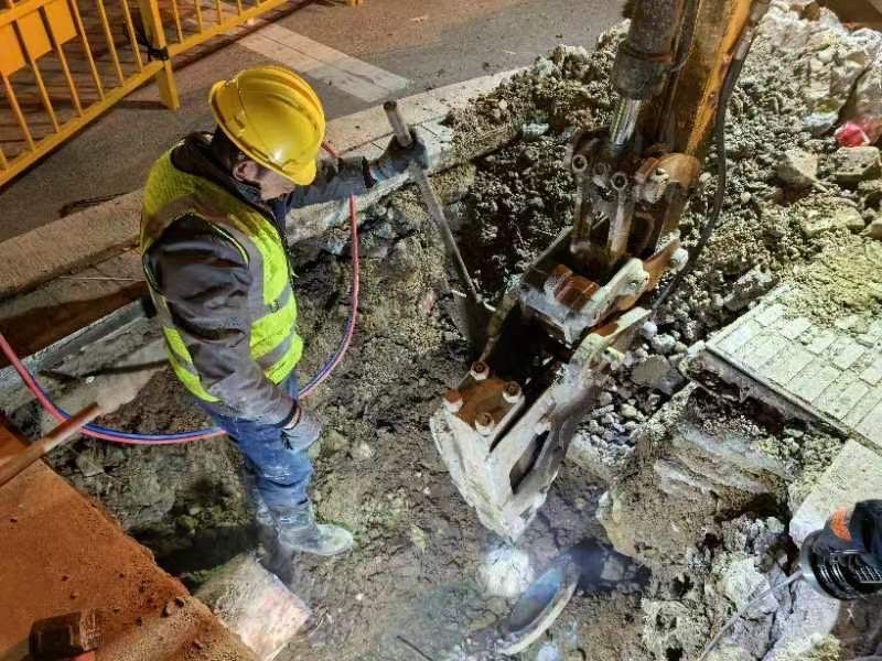 经过工作人员现场确认,停水范围较大,影响的居民数约4500户(五个小区)包括一个学校、一个医院、一个工地。为了确保区域市民用水,水务部门紧急从区域内调节水源不让居民停水,另一方面,迅速制定抢修方案,晚上9点开始抢修管道,最后在凌晨12点30分完成抢修,1点10分完成排污并通水。