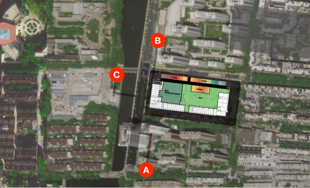 咏归菜市场位置示意图。A、B、C为轨道交通4号线柳西站出口。