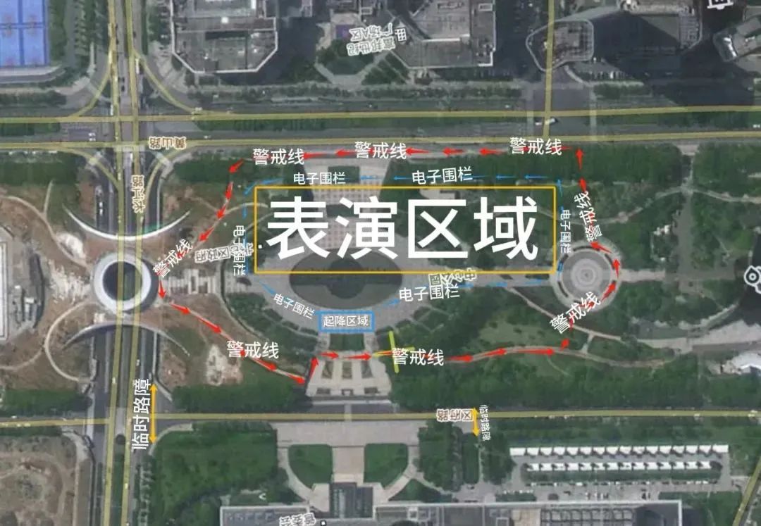 观赏区域:以中心公园广场为中心点,无遮挡情况下,500米到800米范围内都可见,不过,中心广场北面为正面效果,是最佳观赏区域,具体如下: