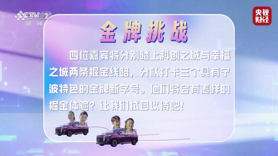 今晚(12月29日),中央广播电视总台《金牌新字号》电视纪实节目,掘“金”之旅第三站走进宁波,主持人和特邀嘉宾在宁波这座充满人文科技的历史文化名城,深入探访科创之城与幸福之城两条掘“金”线路,打卡具有城市特色的“金牌新字号”!