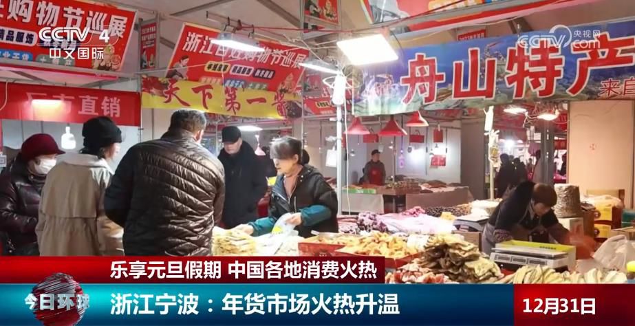 今天(12月31日),央视中文国际频道《中国新闻》《今日环球》栏目播出《乐享元旦假期 中国各地消费火热 浙江宁波:年货市场火热升温》,报道了岁末年初,宁波“新春购物节”等消费活动陆续开展,各大商超、农贸市场的年货品种丰富,数量充足。