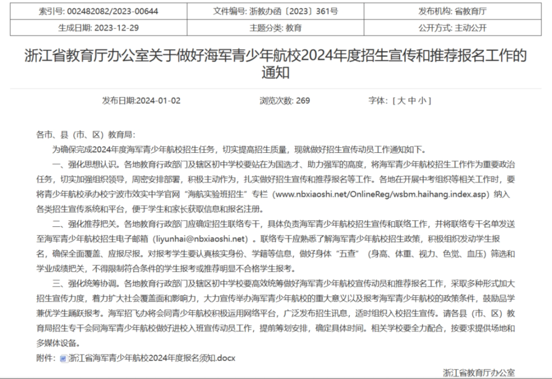 日前,浙江省教育厅公布今年效实中学海军航空实验班的招生计划。通知显示,这个网友口中的“全省最帅班级”,今年招生的视力要求降低了!一起来看↓