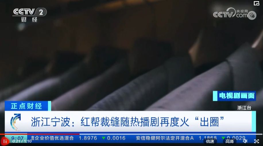 1月10日和1月11日,央视财经频道《经济信息联播》、《正点财经》栏目播出《浙江宁波:红帮裁缝随热播剧再度火“出圈”》,报道了随着电视剧《繁花》的热播,宁波红帮裁缝这项国家级非遗技艺再次火“出圈”。