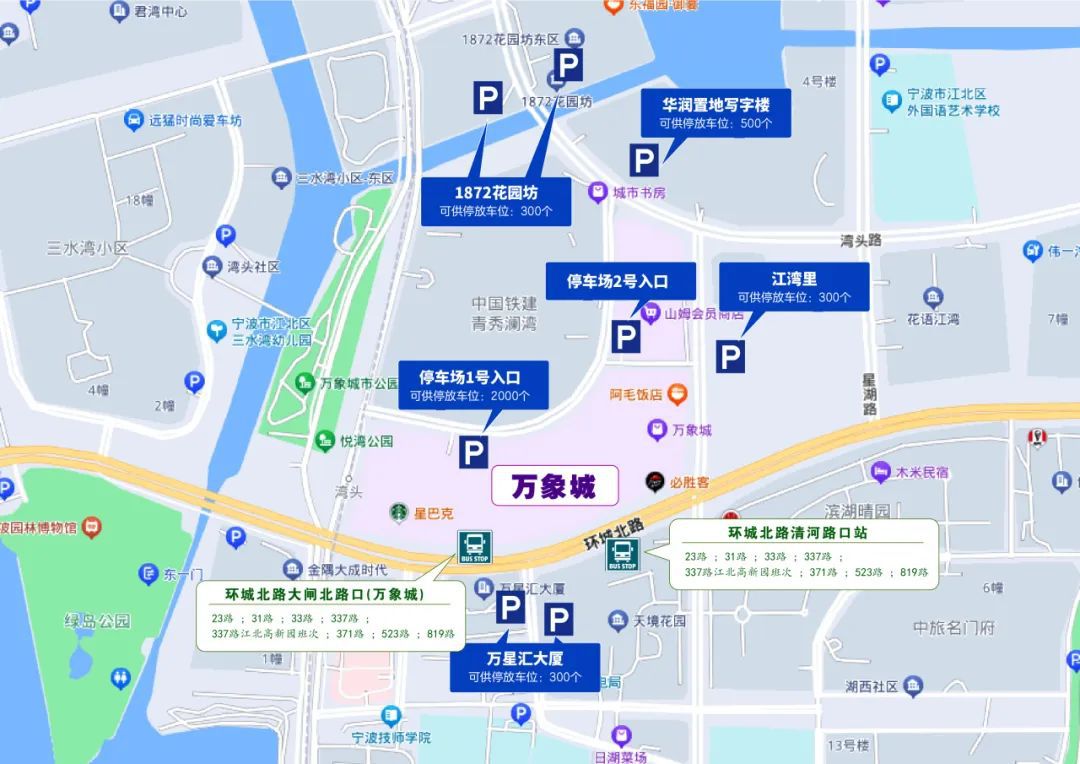 万象城周边有1872花园坊、江湾里商业街等商业综合体,均有停车场可供市民选择。