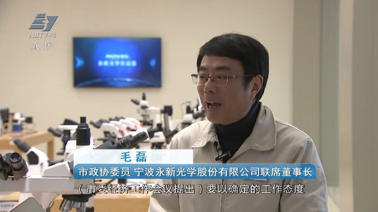 市政协委员 宁波永新光学股份有限公司联席董事长 毛磊:承担国家"十四五"重大研发计划项目叫超分辨显微镜,我们在项目进行到一半的时候已经实现新了首台套的销售,单台的售价达到了280万元,那是一个高端的科学仪器。在新的一年,我们将继续朝着这个方向进行量产。