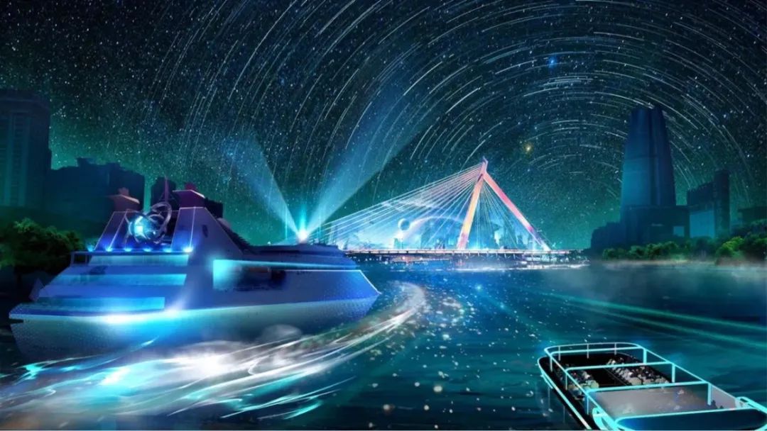 一期结合三江六岸沿线建筑、景观、桥梁、码头等载体,通过光影艺术呈现宁波文化元素。同时为配套项目建设,计划投资1艘元宇宙游船,打造全国首个行浸式“水上音乐厅”。