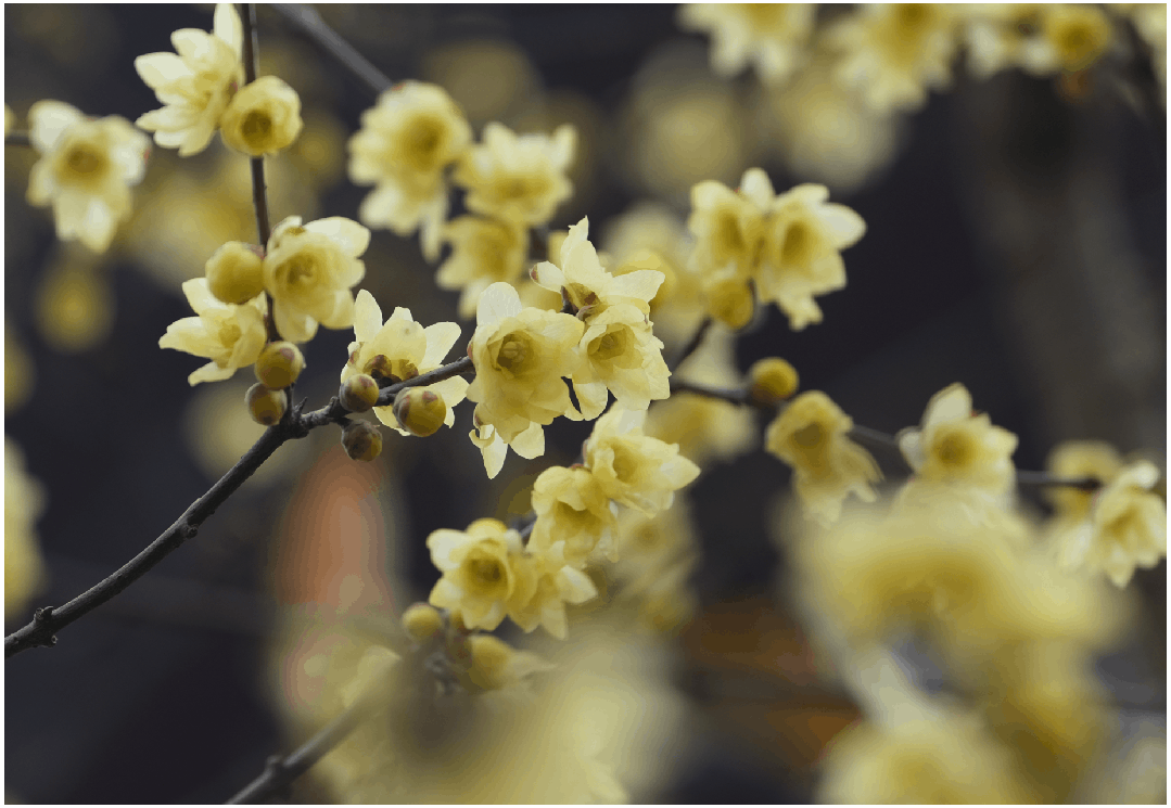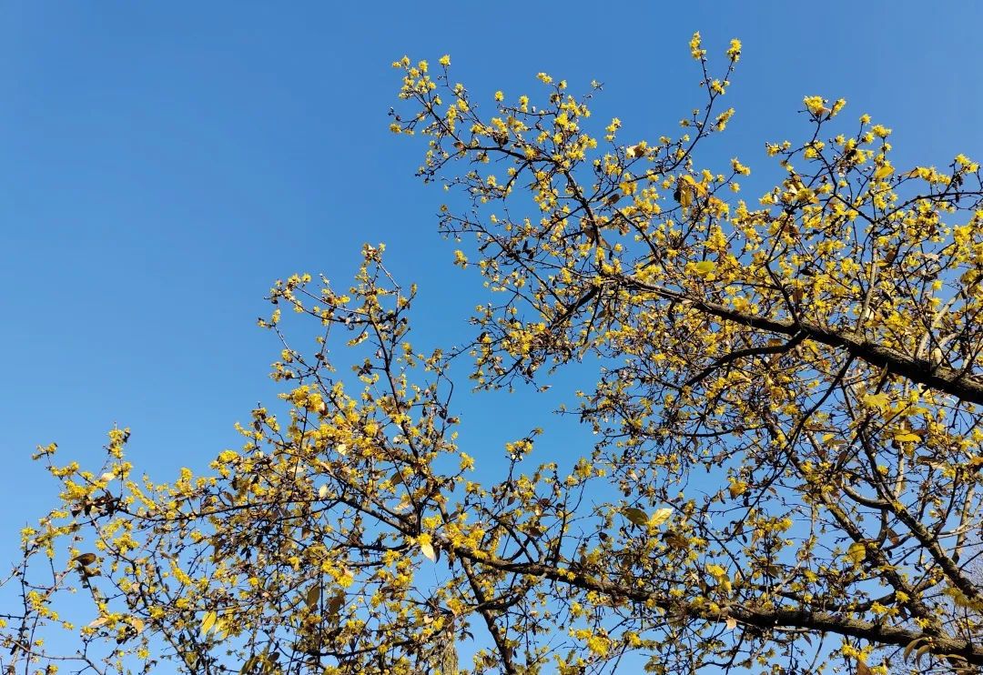 蜡梅是一种非梅类的花卉,因其与梅花同时开放,花香相近,且颜色似蜜蜡而得名。