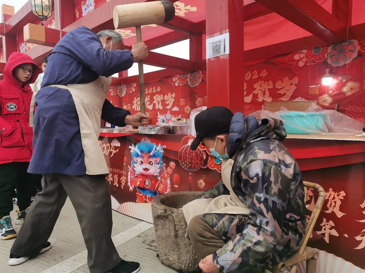 同时,为给大家带来更具年味的民俗体验,现场还安排了传统打年糕展示,并邀请非遗传承人制作面人、绘制糖画,还有宁波汤圆、奉化牛肉面、烤菜年糕等美食品尝,让广大年轻朋友也能感受到老底子的年味。