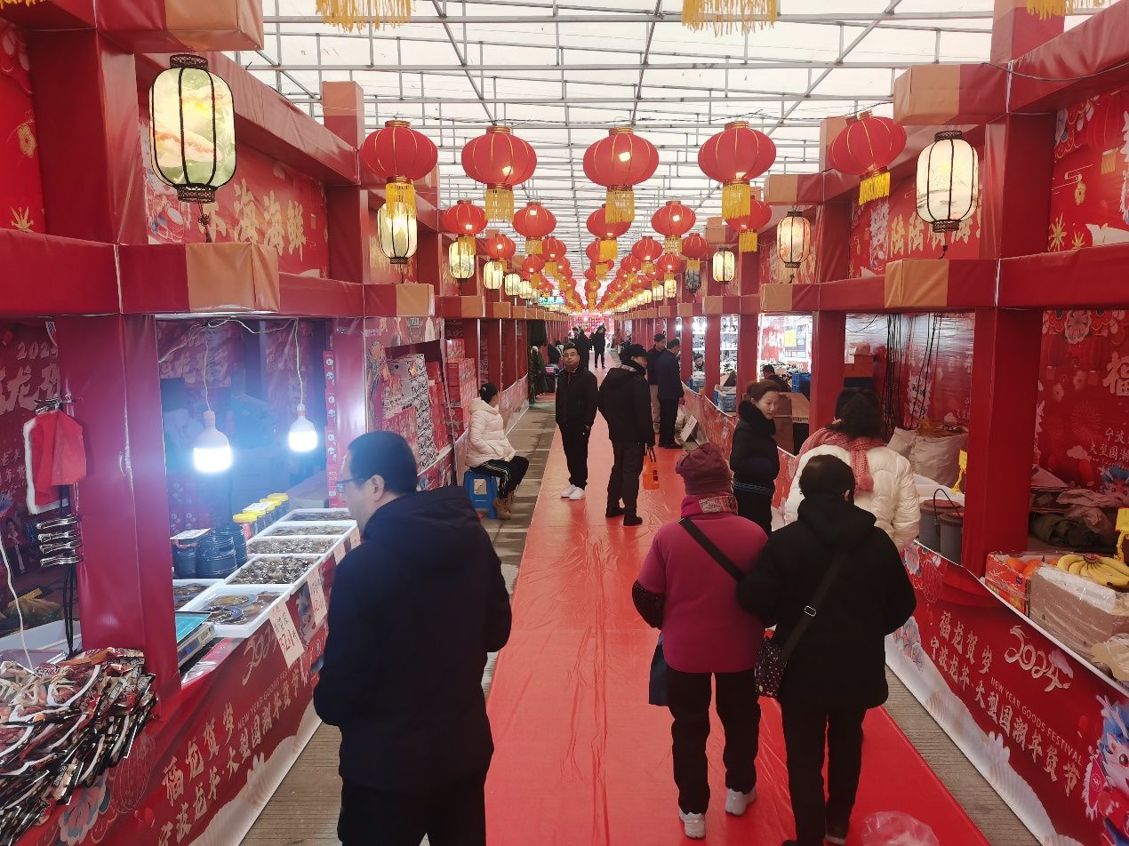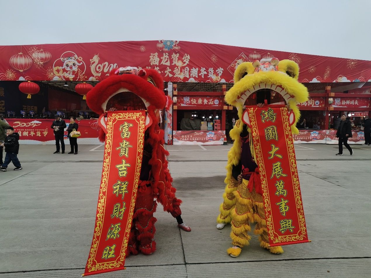 在年货节启动仪式上,主办方还特别安排了舞狮表演,在热闹的鼓点声中,红黄双狮巡游全场,为现场市民、游客带来满满的祝福。而整个年货展销现场也被“中国红”包裹,美食小吃区、干货炒货区、海鲜食品区、年货礼盒区及游玩娱乐区等一应俱全。