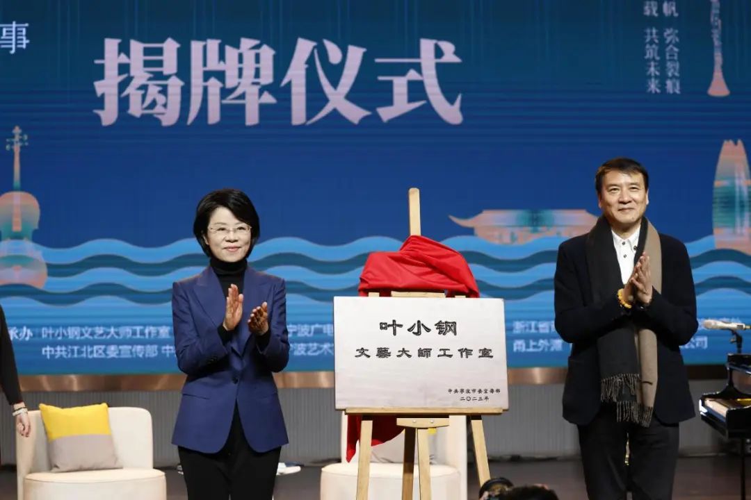 中共宁波市委常委、宣传部部长金彦为叶小钢文艺大师工作室揭牌。