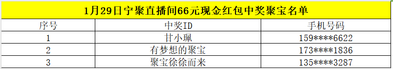 66元现金红包3个,名单如下: