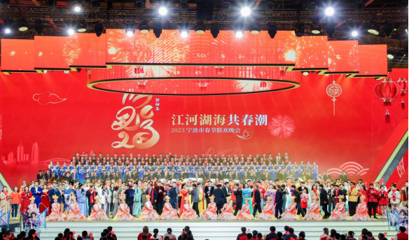 首届宁波春晚以“江河湖海共春潮”为主题,集结全市宣传思想文化战线力量,围绕宁波文化符号讲述城市故事,为春潮起舞,为时代壮歌,全面呈现全市上下踔厉奋发的奋进姿态,以一场独具匠心、暖意融融的文化大餐向全球宁波人送上新春祝福。原创节目占比达90%,参与演艺人员共800余人,38家省、市级媒体平台同步直播,电视端、新媒体端直播总观看人次超1200万。播出当晚,“宁波春晚”登上微博文娱出圈榜第七、同城热搜第一,24小时内全网累计刊发相关报道超250篇,网络点击量近5000万,引发强烈反响。