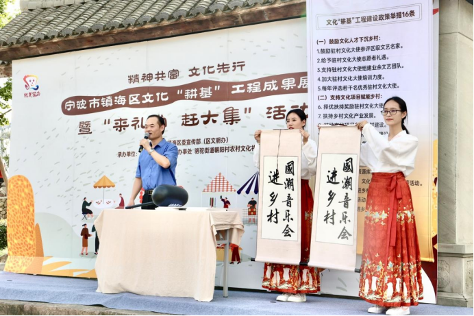 2023年11月4日,镇海区骆驼街道朝阳村文化礼堂举办文化“耕基”工程成果展示暨“来礼堂 赶大集”活动。