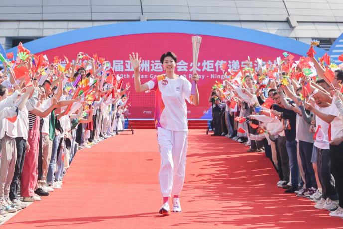 杭州第19届亚运会火炬传递宁波站第1棒火炬手中国女排队队长袁心玥。